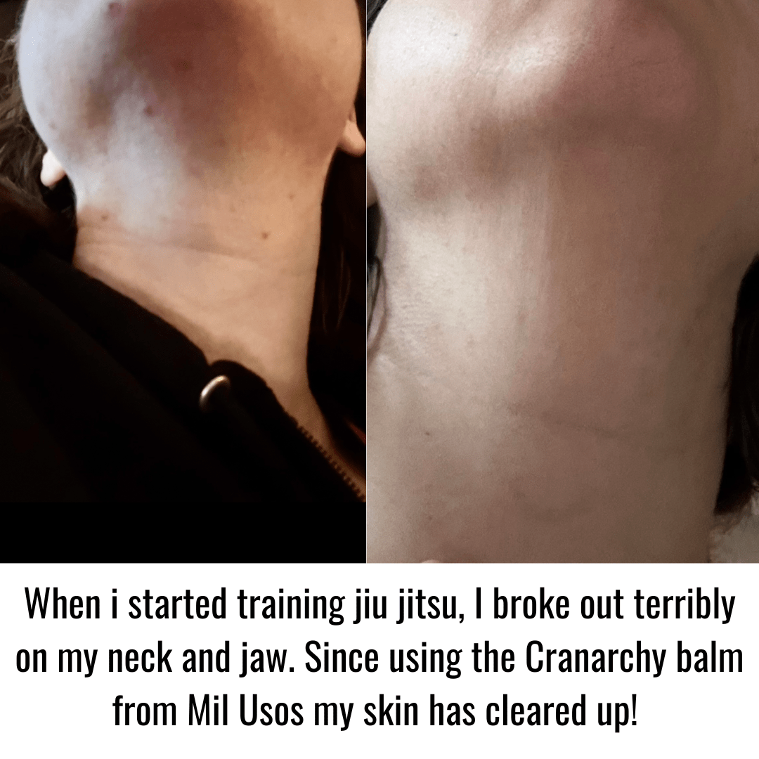 "As someone who has chronically dry skin, I was super glad to have found a one-step solution to all the wear and tear my skin takes from daily training and exercise! Since using Total Cranarchy, I haven't since gotten any staph from being on the mats!"