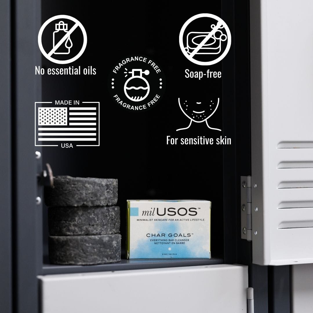 Char Goals Everything Bar Cleanser is a targeted solution for athletes who shower multiple times per day. It deep cleans without compromising the skin barrier.
